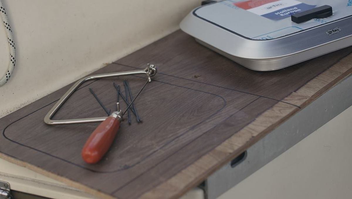 Again, this proved to be a difficult project because the window was too small for the existing hole. We had to cut a platform out of wood, with the outer edge matching the outside part of the hole, then, we would have to cut a hole in it, sized for the new hatch. We didn't have access to a workshop, and the wood was very, very dense (our mistake). We used a handsaw to cut it, and it took AGES, many hours of sawing interspersed with bouts of whining and thoughts of dying of old age with this piece of wood, still uncut.