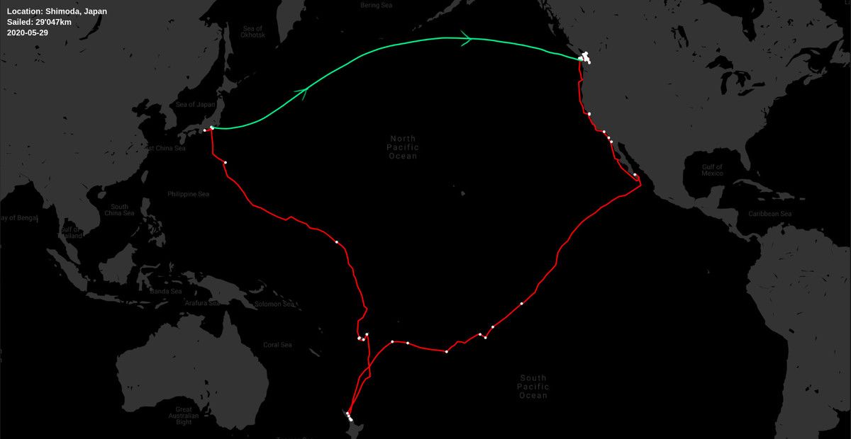 On the morning of June 9th 2020, we left the port of Shimoda to sail east, toward British Columbia, Canada. The distance is 4045 nm (7491.34 km), and will take anywhere from 40-50 days. Wish us luck.