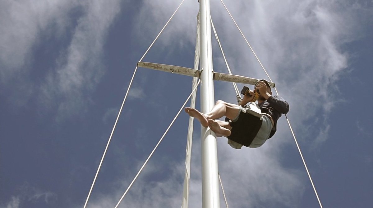 Because the weather was kind we got to replace the sheave at the top of the mast on the same day that we took it off. It is very rare for us to go up the mast twice in the same day.