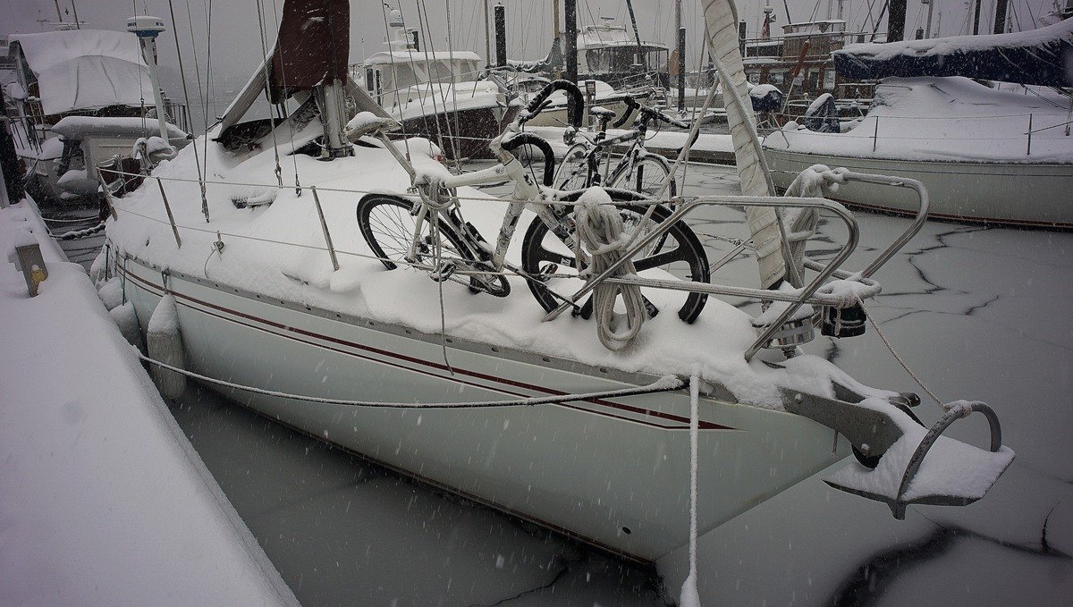 While there, we experienced our first ever snow with the boat.