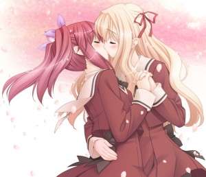 A Kiss for the Petals (その花びらにくちづけを, Sono Hanabira ni Kuchizuke o) is a series of Girls Love Eroge Visual Novels by Fuguriya. The series also includes some tie-in Light Novels, drama CDs, a couple of spin off Web Serial Novels, and an OVA. This series is notable for attempting to be more romantic than most Eroges. One way this is attempted is by having all pairings be monogamous and eschewing any Dating Sim elements. It is also known for its lack of hardcore material, a rarity in the hentai yuri genre.