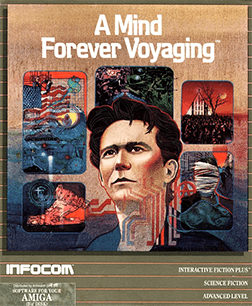 A political text-adventure game designed and implemented by Steve Meretzky and published by Infocom in 1985. Really, though, it doesn't really fit the usual preconceptions of the genre... after all, there's only one puzzle and it takes place near the end. Interactive Fiction has applied to few games better than this one, and indeed, was probably the game most influential in the early creation of the term. AMFV is among Infocom's most respected titles, although it was not a commercial success.