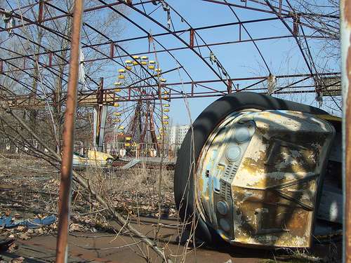 - Pripyat, Ukraine, a worker town for the Chernobyl Power Plant about eighty miles from Kiev, and evacuated after the Chernobyl disaster. It's more or less a perfectly preserved Soviet ghost town. You can actually visit it under supervision, but you wouldn't want to live there. The picture on this page is from the amusement park in Pripyat.