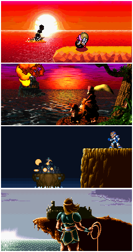 - The endings of many, many Castlevania games. Except more often than not, the castle is still crumbling as the Belmont-of-the-Day looks on from a distant cliff.