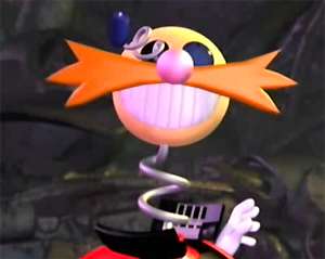 - Dr. Eggman pulls this stunt after you first defeat him in Sonic Heroes, regardless of which team you play as. Subverted when the robot melts into goo, then reforms into Metal Sonic, revealing the whole thing to be a ploy.