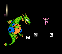 - Mega Man 2 The most iconic example (and, for a great many gamers, probably the most iconic Advancing Wall of Boss, period) is the giant robot dragon, pictured at the top of the page, which chases you over a long series of tiny platforms over a void and then turns into a standard boss fight once you reach a group of three platforms at the end of this chain.