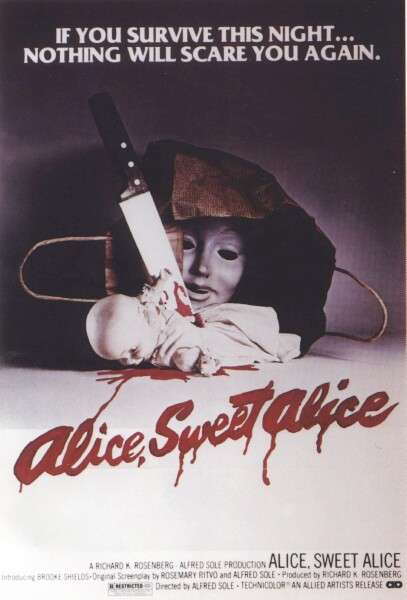 Alice, Sweet Alice (1977) is an American Psychological Horror Film that was first released as Communion in 1976, then as Alice, Sweet Alice in 1978, and as Holy Terror in 1981. It is noteworthy for being the feature film debut of Brooke Shields.