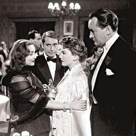 Featuring what is perhaps Bette Davis's most memorable performance, All About Eve is a 1950 Twentieth Century Fox film, written and directed by Joseph L. Mankiewicz, recounting the tale of Margo Channing, a seasoned veteran of the stage and the darling of Broadway, taking under her wing Eve Harrington, a young acolyte with nowhere else to go, whose motives are not what they seem. Other important characters include Addison DeWitt, a jaded, cynical, and frighteningly influential drama critic; Bill Samson, Margo's director boyfriend; Lloyd Richards, Margo's playwright; and Karen, Lloyd's wife and Margo's closest friend and confidant. The costumes were by famed Hollywood designer Edith Head and the film score was by Alfred Newman.