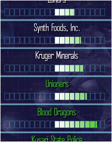 For instance, imagine you take a mission from Faction A to kill ships belonging to Faction B. This pleases Faction A and the allied Faction C, while angering B and their allies in Faction D. Depending on your current and desired relations with Factions A, B, C and D, this may work out to be either good or bad for you.
