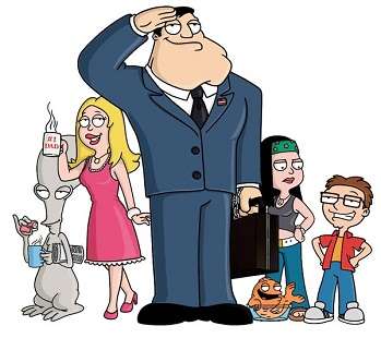 The second cartoon sitcom from the creator of Family Guy, Seth MacFarlane. A pillory of American Ultra-Conservatism played out on Rupert Murdoch's network, it follows the daily life of initially-paranoid and extremely patriotic CIA agent Stan Smith, his over-protective wife Francine, nerdish teenage son Steve, and liberal and rebellious teenage daughter Hayley. The pilot episode explains that, on a mission, Stan uncovered a runaway talking alien named Roger, who lives in the family's attic for protection from getting turned in to the federal agency, until he adapted more to the outside world and became more outgoing through the use of various disguises later in the series. They also have a talking German goldfish named Klaus, who used to be a human.