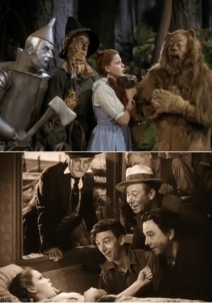 - In the most famous example, all of Dorothy's friends in Oz in The Wizard of Oz were played by the same actors as played Dorothy's Kansas-area friends. This connection was acknowledged in the movie (the connection does not exist at all in the original novel), of course, in the line above. In this case, it's intended to show that it is All Just a Dream.
