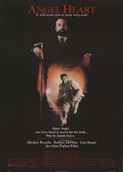 Angel Heart is a 1987 horror movie directed by Alan Parker, starring Mickey Rourke, Robert De Niro and Lisa Bonet. Set in the late 1940's, a private detective (Rourke) is hired by a mysterious client (De Niro) who seeks to find a man named Johnny Favorite. This search leads him to New Orleans, deep in the heart of its voodoo district. What starts off as a simple missing person's case soon excalates into multiple murders and the supernatural.