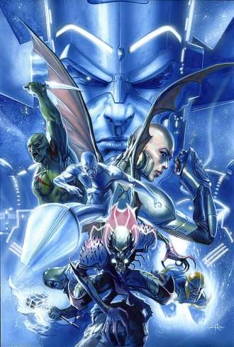 - Loads and Loads of Characters: Okay, let's see: we have the main characters, Nova, Drax, Kl'rt, Silver Surfer, Ronan, and then we have side characters like Firelord (and the rest of the Heralds), Paibok the Power Skrull, Gamora, Moondragon, Thanos, Phyla-Vell, Quasar, Star-Lord, and many, many others. Suffice to say, if they're a space hero, they were probably seen, even if only in a cameo.