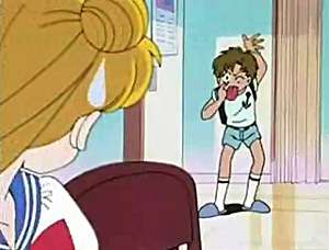 - Tsukino Shingo from Sailor Moon; he was actually quite tolerable and likable, but like many other extras, he vanished over the show's run. The Annoying Younger Sibling role was taken by Chibi-Usa, who immediately partnered with Shingo to make Usagi's life hell. (posing as the main character's cousin, but actually her Kid From the Future), whose actual involvement in the plot (so much so that she got her own season) made her a little too annoying.