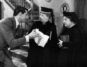 Cary Grant's character, Mortimer, is the most normal member of his family, and was a committed bachelor until he finally married the girl next door. He has two sweet old aunts, Abby (Josephine Hull) and Martha (Jean Adair), who like serving homemade wine to lonely old men... and sometimes put arsenic in it. There is also a blatantly insane older brother (John Alexander) who thinks he's Teddy Roosevelt. As the action opens, Mortimer has decided to surprise his family with his marriage, and shows up with his new bride on his aunts' doorstep.