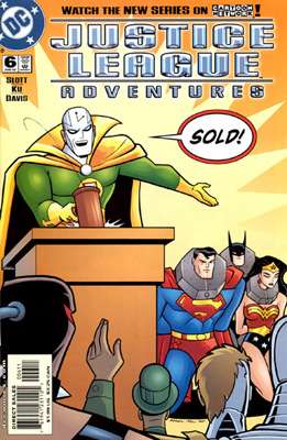 - Justice League Adventures #6 as seen above, with time-travelling villain Chronos on the seller's podium. In this issue the whole thing is a Batman Gambit by the man himself (and the rest of the League) to capture all the attending supervillains.