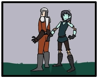 - As well as Norrin (her boyfriend, possibly) wearing a full-pants version of the B&W female player character.