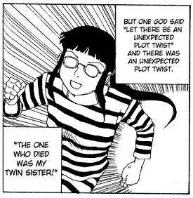 - Just to confuse things, the actual evidence towards a Backup Twin effect, one of the twins surviving long enough to kill Keiichi in the hospital, turned out to be 100% dying hallucination on Keiichi's part, as revealed in the games. In reality, both twins were dead by that point, but not in the order expected.
