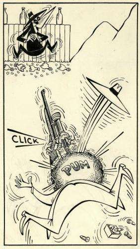 - Happens with a wrongly assembled cannon in Buster Keaton's The Playhouse.