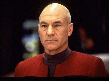 - And The Doctor from Star Trek: Voyager, Robert Picardo. Even he noticed the coincidence between Stewart's character and his last name, but hey, "if Picard can baldly go where no one has gone before, so can a Picardo."