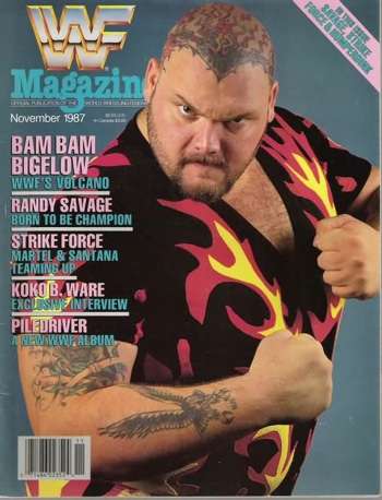 Bam Bam Bigelow (real name Scott Charles Bigelow, born September 1, 1961) was an American professional wrestler from New Jersey, commonly referred to as "The Beast From The East." While his most famous run was with the WWF (now WWE), he also made appearances for WCW and ECW in the 1990s. A big man, nearly 400 pounds, Bam Bam stood out from the other monsters in the business by being particularly agile for his size, as well as his trademark look: tights with a flame motif to match the tattoo of flames on his skull.