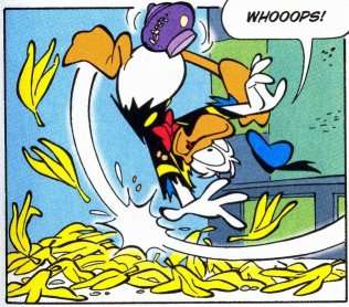 - Yet another strip shows the main character trying to infiltrate in one house by walking right up the façade. It works well, until he slips on a banana peel.