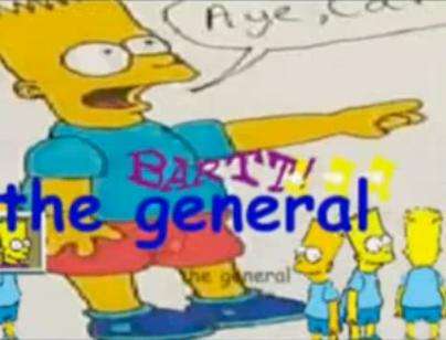 Bart the General is a series of animated short films made by one GHXYK 2, a member of the group known as "Famicon", and is based very, very loosely upon The Simpsons. It is also a complete and utter Mind Screw, the sort of stuff that would make David Lynch piss his pants. With an animation style that looks like it was drawn in Kid-Pix or MS Paint, and a narrative that cannot remain on one subject for any amount of time, the series is extremely surreal and frightening. The series comes in four parts with an apparent fifth, as the fourth ends with a TBC screen.