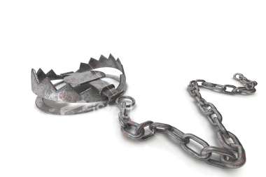- Bear traps are frequent props in The Three Stooges shorts, notably in "The Brideless Groom," where Moe and Larry try to use one to break up an all-female brawl. Naturally they're caught in their own trap.