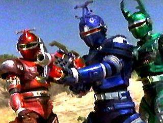 The second season had an exchange of villains and subsequently an exchange of costumes, with a new ally in the artist who created the comics and his evil brother working for the new bad guys. Slightly Darker and Edgier but nothing too shocking. The show remained relatively popular, but like Power Rangers the source footage eventually ran out. Unlike Rangers, there was no follow-up series to adapt (well technically there was, but it was drastically different from the previous B-Fighter shows and was somehow even more kid-friendly than Beetleborgs).