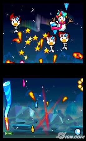 Big Bang Mini is a Nintendo DS Shoot'Em Up designed by French developer Arkedo Studio, who also worked on the Breakout clone Nervous Brickdown. The game is mostly stylus-based, and your objective is to defeat enemies on the top screen by flicking your stylus upward to create fireworks.