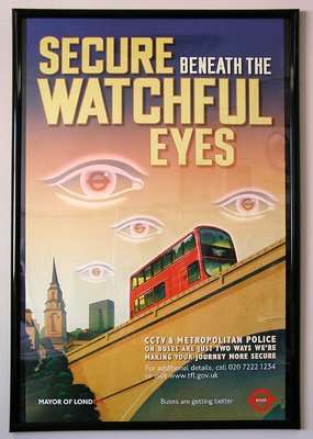 - Actually it was based on dystopian propaganda. The artist used several designs and the people who put them up felt the secure beneath watchful eyes poster was the best.