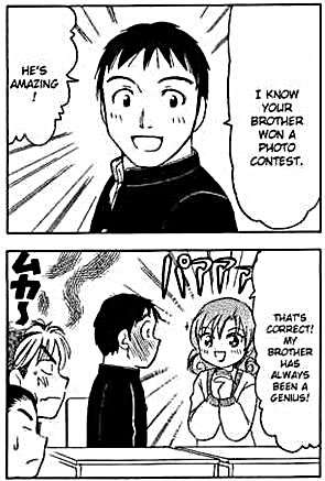- In the Ouran High School Host Club manga, this trope is played straight with Satoshi Morinozuka's adoration of his older brother Takashi.