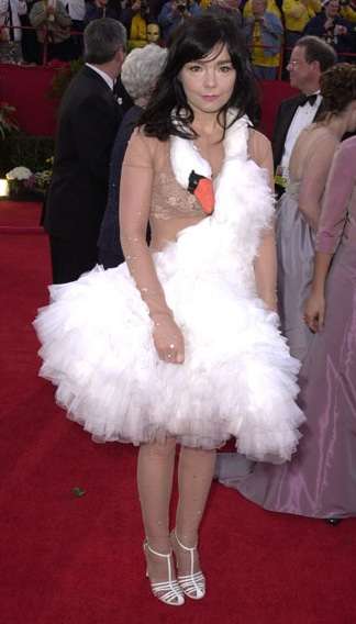 Björk Guðmundsdóttir (born 21 November 1965) is a woman from Iceland who's famous for several things: her voice, her weird (but awesome) music, her strange outfits, her unique music videos, her acting in the Tear Jerker Dancer in the Dark (for which she won the prix d'interprétation féminine - the Cannes Film Festival's Best Actress Award), her cool accent, and her habit of beating up paparazzi. From 1986 to 1992, she was in the alternative rock band called The Sugarcubes, who were the first Icelandic musical act to ever gain any sort of success outside of Iceland (mostly in the UK and American alternative radio), mostly from the endorsement of beloved Radio 1 DJ/indie tastemaker John Peel. After they broke up, Björk went on to have a more successful, arguably better solo career.