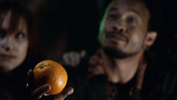 - In Terra Nova, the father brings an orange to the family in the opening scenes.