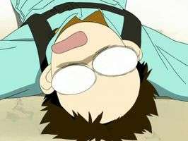 When shocked or stunned emotionally, mentally or physically, the character's eyes are briefly replaced by blank white disks with sloppily-scrawled black "borders" around them. Functionally equivalent to the American Circling Birdies. Can be combined with Blue with Shock for extra impact. Glasses-wearing characters sometimes use shiny glasses instead. Note that because the pupils and iris allow light to enter the eyes, characters with blank white eyes should be blind.