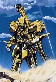 - Mobile Suit Gundam 00's Alvatore and its core MS, Alvaaron. Since its pilot also has a golden gun and wears a gold-colored pilot suit, this is more a case of egotism.