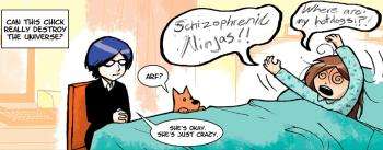 - Schedule Slip: After managing to go one strip per day for ages, the comic eventually dropped to a strip every few days, and then stopped altogether. Apparently, the author was in a car accident, and was unable to draw for two months. After two months, the comic resumed on December 15, although updates have slowed down to almost a monthly basis now, as of March.