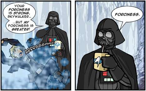 A webcomic parody of the original Star Wars trilogy, plus the Star Wars Holiday Special, Splinter of the Mind's Eye, and Shadows of the Empire.