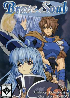 Brave Soul is a hybrid Eroge/RPG for Windows, released by Crowd and translated into English by Peach Princess. It chronicles the adventures of a young man named Rudy (who the player can rename as he/she sees fit) as he sets out on his own (accompanied by a tiny dragon named Shell), and the women he meets along the way. The game allows the player to equip Rudy, Shell, and 2 other party members with weapons, armor, and accessories, as well as set skill shortcuts from the game menu. Combat takes place in real-time, with the player assuming control of Rudy, and the AI controlling the other party members based on preset behavior settings. For example, a magic-user's actions can be set to spend mana cautiously when attacking, prioritize debuffs, or let loose with her most powerful spells, consuming mana potions like water in the process. Experience gained from combat allows characters to level up, which increases their stats. New skills however are learned / earned through events, initiated by the player choosing to spend time at an inn. The party members go their separate ways, pursuing their hobbies and interests, and the player's task is find them and spend time with them.