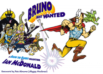 Bruno the Bandit is a long-running fantasy Web Comic by Canadian cartoonist Ian McDonald. Most of its humor comes from being set in a standard medieval fantasy world, but with computers, TV home shopping and vacuum cleaners. The rest comes from the protagonist Bruno Bunkleyutz (a strong but somewhat dim bandit), his smart sidekick (Fiona the micro-dragon) and his wacky family: Eunyce, his former warrior hottie Action Mom; Ambrose, his one-armed bandit father, and Elysia / Ella, his girlfriend, a fame vampire.