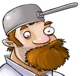 - "Cow-la-nell" Homestar Runner wears an orange mixing bowl on his head.