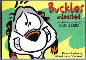 Buckles is a comic strip by David Gilbert that debuted in newspapers nationwide (yes, nationwide) in 1996. It follows the misadventures of a naive dog named Buckles, who lives with a pair of caring yet overprotective human owners (or, to a lesser extent, "parents") named Paul and Jill. Every single time, Buckles would have Paul teach him dog tricks, or would love to steal a valuable article of clothing and chew on it, which will always result in a punishment. When his owners aren't around, Buckles usually creates plans with an unseen flea that lives in his right ear, or talks to other animals outside, including a bird friend named Arden.
