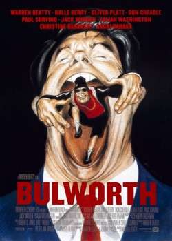 Bulworth is a 1998 film, starring Warren Beatty and Halle Berry. The story begins as the title character, Senator Bulworth of California, grows weary with his political career and failing marriage. He decides to end his life, taking out a ten million dollar life insurance policy so his daughter will remain well off, and hiring a hitman to kill him in two days' time. With nothing to lose, he spends his final hours telling the public how he really feels about them, smoking marijuana, dressing like a gangsta, and rapping about socialism.