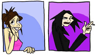 Jennifer Babcock's Slice of Life webcomic about living in Los Angeles. The two principal characters are Mona Montrois, a Paris-born immigrant to the USA, and Donna, her Valley Girl housemate and best friend. Mona is a would-be Sartre or Camus. In contrast, Donna is a lovable airhead.