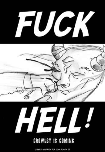 - Meaningful Name: Crowley. His christian name's relevance is obvious given his real nature; his surname, meanwhile, is a Shout-Out to Aleister Crowley, who actually identified publicly (and was labelled by many others) as The Antichrist (although it should be noted that he himself was just playing to controversy; actually believing himself to be The Antichrist would have required a belief in the Christian God).