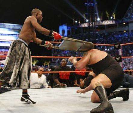- "Give him the Chair!" is shouted by a spectator in a WWE parody in the first Shrek. The Ogre gladly obliges.