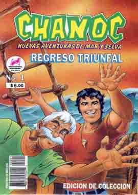 Chanoc (this name, and other unusual names in the series, comes from Mexican Indian dialects) was a young man who grew up in the Mexican jungles and could kill even Jaguars. Eventually however he was found by a kooky old man named Tsekub who claimed that he was Chanoc's "godfather" (a claim Chanoc himself didn't fully believe) and who brought Chanoc with him back to civilization. Civilization, in this case, being the fishing village of Ixtac, where Chanoc settled down to live as a fisherman... but could not help running into crime and adventures all the time: maneating sharks or jaguars, smugglers, and such.