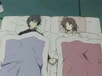- Mikiya and Shiki in Kara no Kyoukai are obviously in love, but are chaste to the point of one time sleeping in the same bed with their clothes on and not doing anything.