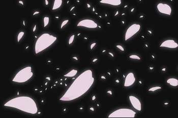 - Invoked twice in Bleach: Captain Shunsui Kyouraku likes the aesthetic of falling sakura, so he has his subordinates drop them on him as he enters battle. And Byakuya Kuchiki's special move is a thousand tiny but deadly blades (or a nigh-infinite number of them, in Bankai), which reflect light to look like sakura floating on the wind.