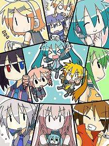 Chibi Mikusan is what you get when you cross Vocaloid with Azumanga Daioh (Or any Moe-themed 4koma for that matter). Chibi Mikusan is a webcomic that narrates the humorous everyday life of Chibi-Miku and the rest of the Vocaloid gang in a series of silent, often non sequitur strips. Illustrated by a Japanese artist named Minami, it used to be a gag per day webcomic series until recently, where new strips are released erratically (which can range from once every few days to a whole month). Though it is not the first Vocaloid 4koma series nor the most original, it is arguably the longest running out there with a small but dedicated fanbase.